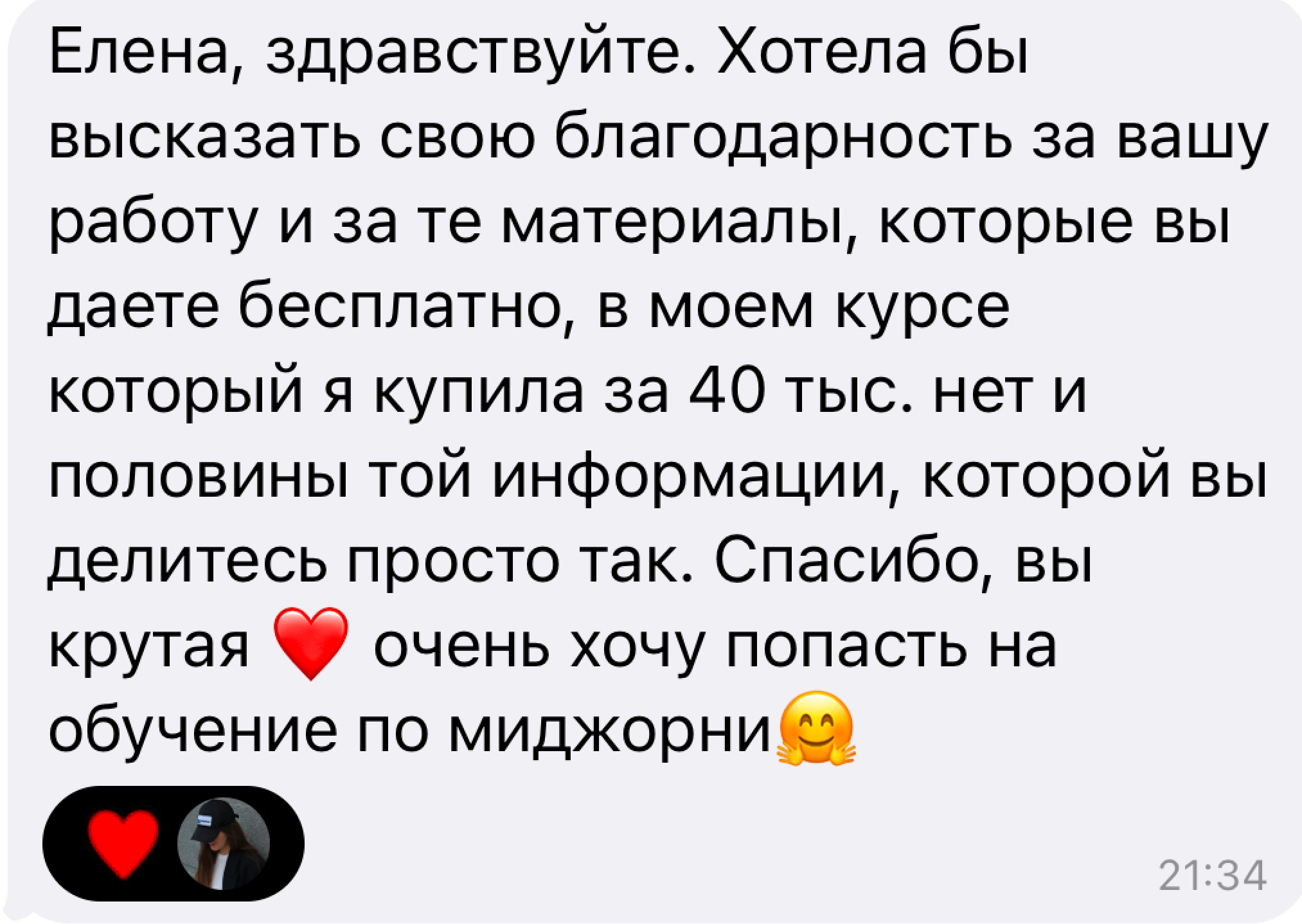 Обратная связь от Елены и кураторов